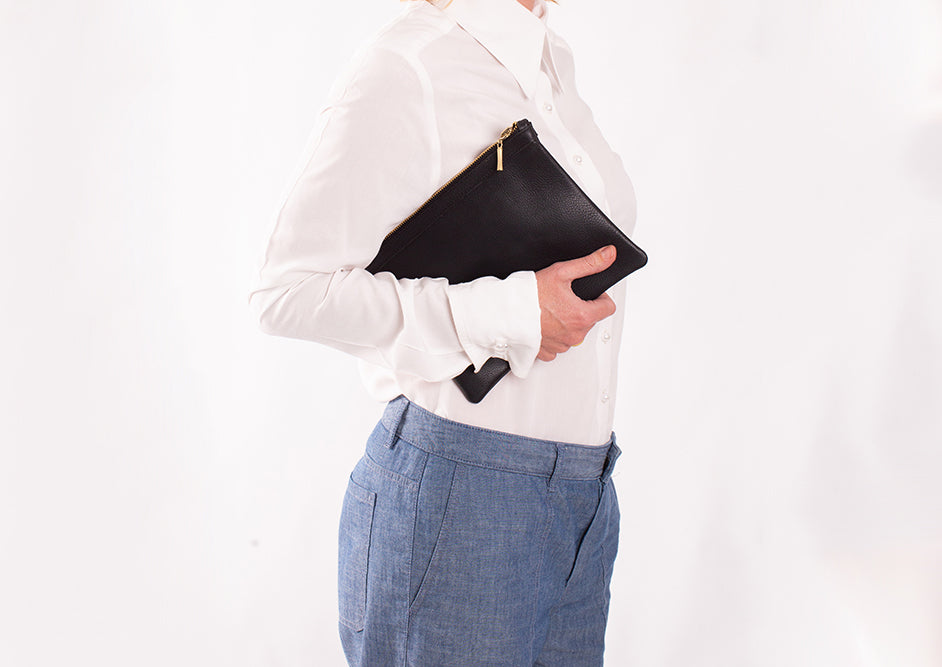 A perfect pouch. Carry it in hand or slip it inside your handbag. Handcrafted in limited numbers using a black nappa leather, this pouch can be used as a day or evening clutch or wallet.