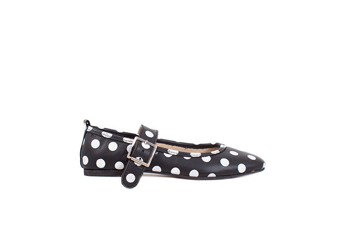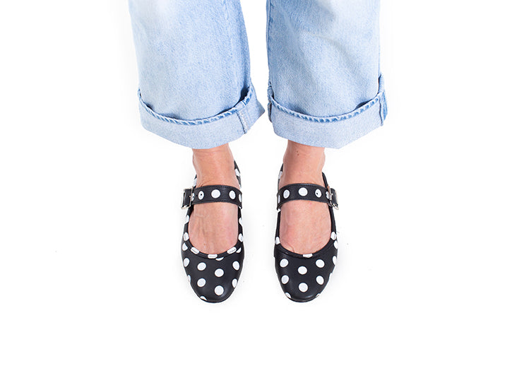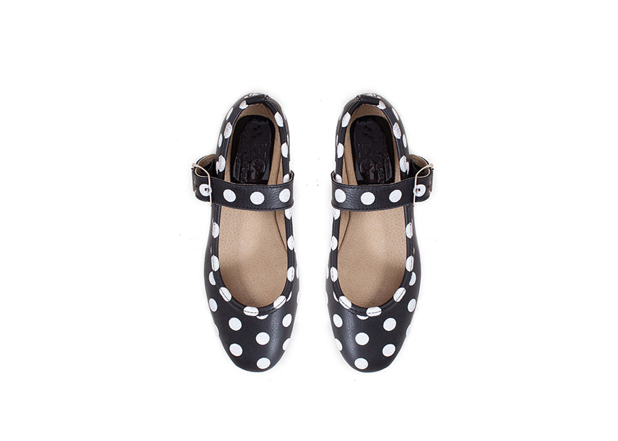 Mary Jane ballet flats - black polka dot leather