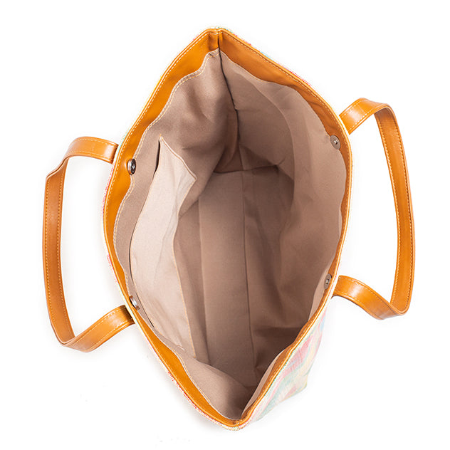 House of Cinnamon continues its association with craftsmanship by bringing you this limited edition shopper. Crafted from an italian printed raffia material and finished off with tan leather detail, this bag is a must have.